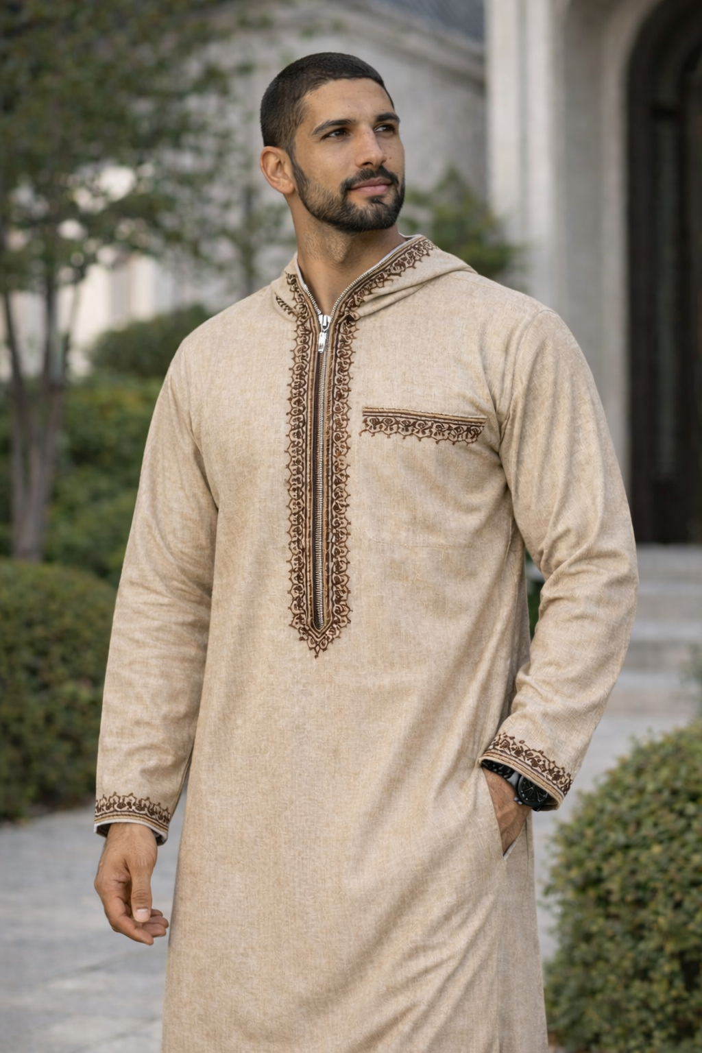 صُمّم بعناية ليعكس توازناً فريداً بين الأصالة واللمسة العصرية. يتميز بتطريز فاخر باللون الكافين يمنح إطلالتك حضوراً مميزاً.