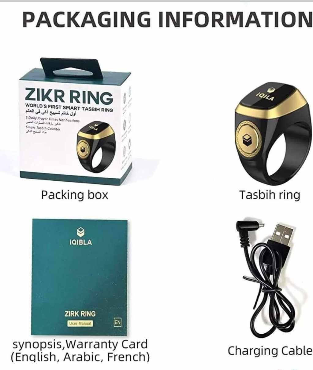 • المميزات: • الخاتم حجمه صغير وكمان فيه شاشة عشان تعرض عليه عدد التسبيح. • مزودة بشاشة OLED توّفر صورة بجودة عالية ومبيستهلكش طاقة. • متوافق مع جميع الهواتف الذكية: يمكنك استخدامه مع أي هاتف ذكي يعمل بنظام iOS أوAndroid. • تطبيق قبلة للتسبيح يوفر لك مجموعة من الميزات المفيدة، مثل تسجيل التسبيحات ومشاركة إحصائياتك مع الآخرين. • بييجي ببطارية مدمجة بسعة 40 ميلي امبير في الساعة، وكمان مع بطارية بسعة 120 مل • فيها زر مدمج بتقنية التحكم cnc تقدر تعد من خلاله • تقدر تسبح عليه وهيسجلك التسبيح طول اليوم. • كمان فيه منبه بالصلوات الخمسة. • مصمّم من مواد عالية الجودة ومش هتحس بأي تعب وانت لابسه. • هيخلي التسبيح سهل عليك طول اليوم. • مثالي لأداء تسبيحات المسلم. • رائع للاستخدام أثناء الصلاة أو في أي وقت آخر. • مفيد لمراقبة تقدمك في أداء التسبيحات. • المواصفات: • وزن السلعة : 30 جرام. • المقاس: 20 • اللون: عشوائي