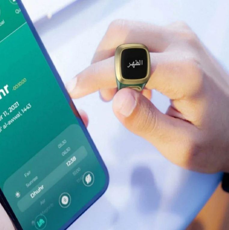 خاتم تسبيح ذكري ذكي مقاوم للماء من اي قبلة، للصلاة الإسلامية، تذكير بتوقيت الصلاة، شاشة OLED، عداد للتسبيح