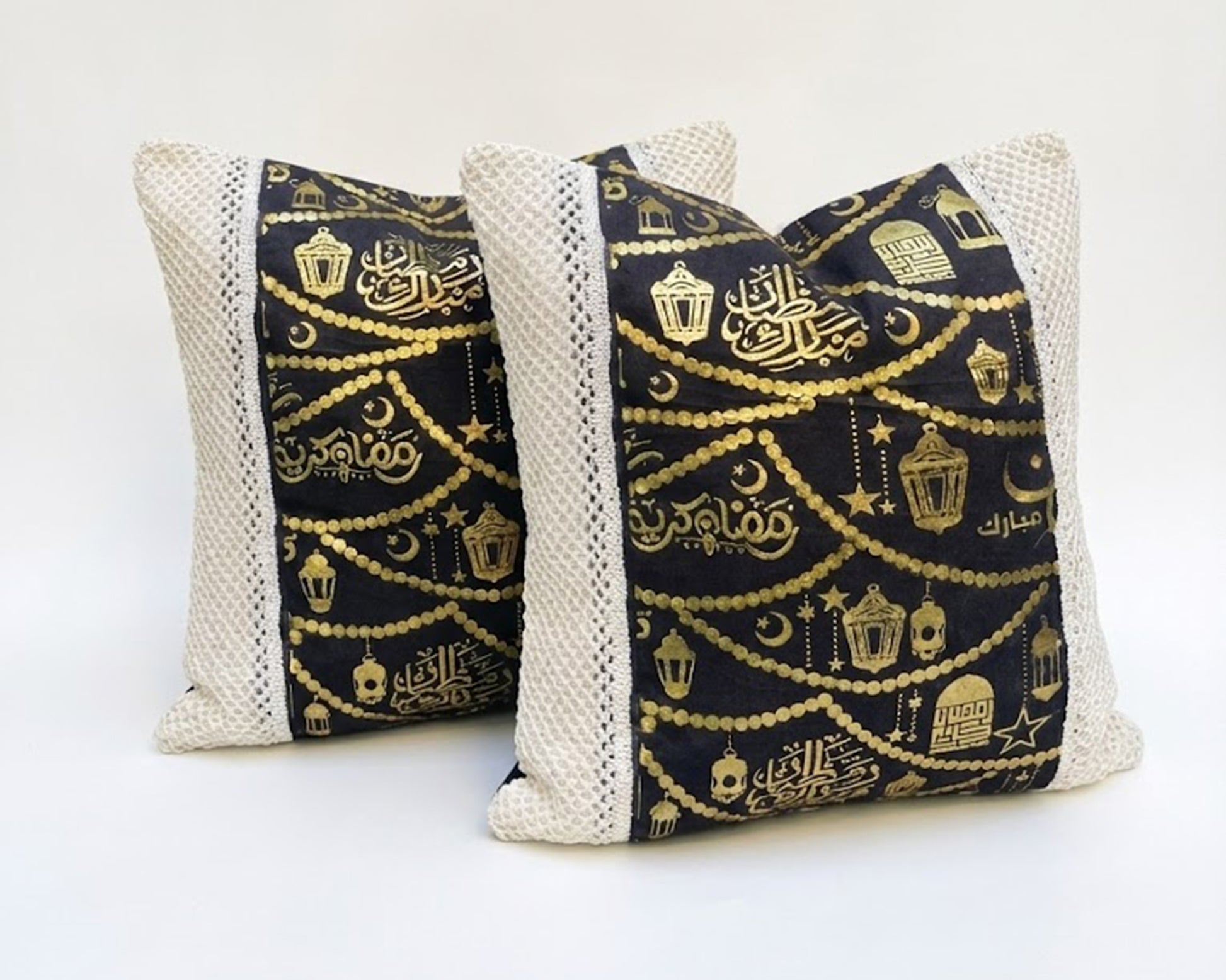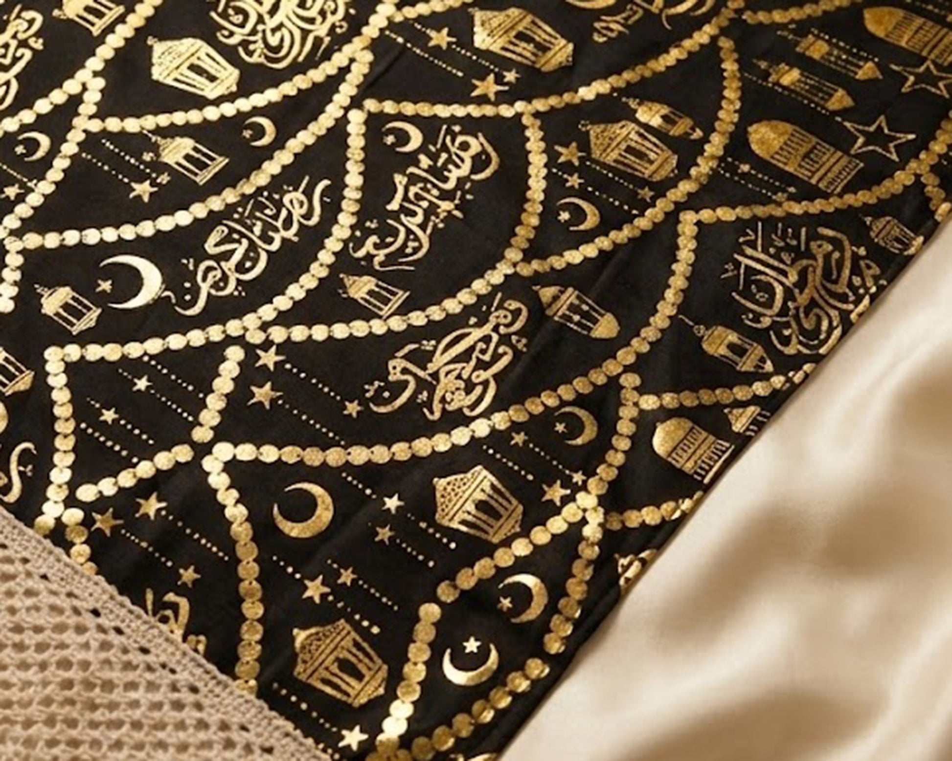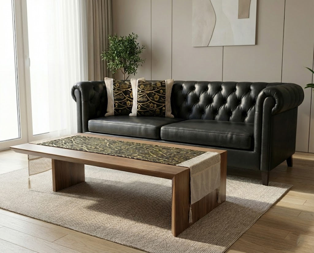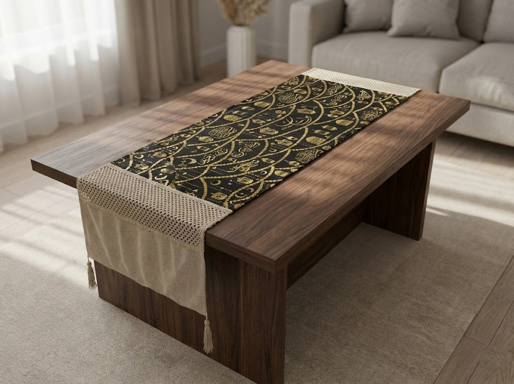 رانر طاولة مع 2 كفر كوشن – بيج × أسود بتصميم رمضاني فاخر